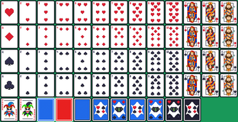 - Full deck: Hearts, Diamonds, Clubs, Spades